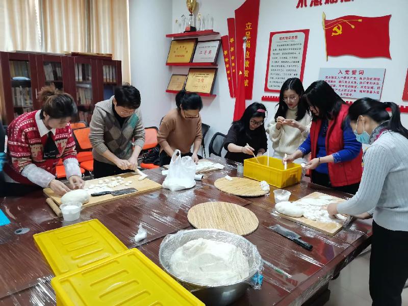 上午十点半,在财经金融系主任董红的带领下,老师们开始了元旦包水饺活动。
