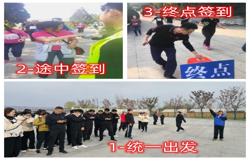 统一出发(无需打卡)→途中打卡处打卡签到3次(必须签到)→终点处打卡签到1次,完成比赛→交回计时芯片,比赛完成。