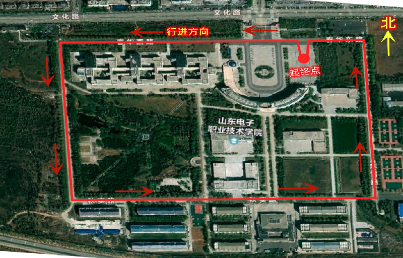 七、比赛路线图(红线为比赛路线,红色箭头为行进方向)