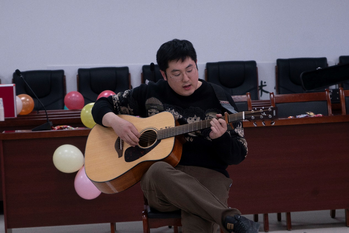 联欢会在欢快的舞蹈《我最红》中拉开序幕。整场联欢会内容丰富,形式多样,精彩纷呈;各个分工会的老师纷纷登场,一展身手。小合唱《金梭和银梭》、吉他弹唱《风吹麦浪》、《三句半》、英韩日三国语言朗诵、女生独唱、歌曲串烧等节目接连上演,不时赢得台下观众的阵阵掌声;趣味小游戏和幸运抽奖环节穿插进行。最后,联欢会在歌曲《相亲相爱一家人》中落下帷幕。