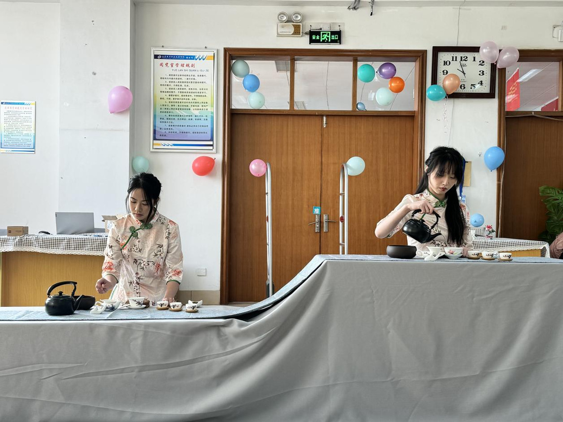 活动共设置两个游戏,每个游戏共进行两轮。抢凳子、踩气球作为经典游戏深受老师们的喜欢。老师们通过踩气球游戏,释放了工作压力;本次活动还邀请了茶艺传承与创新协会的同学们进行茶艺表演,让我们更进一步的了解中国茶文化。