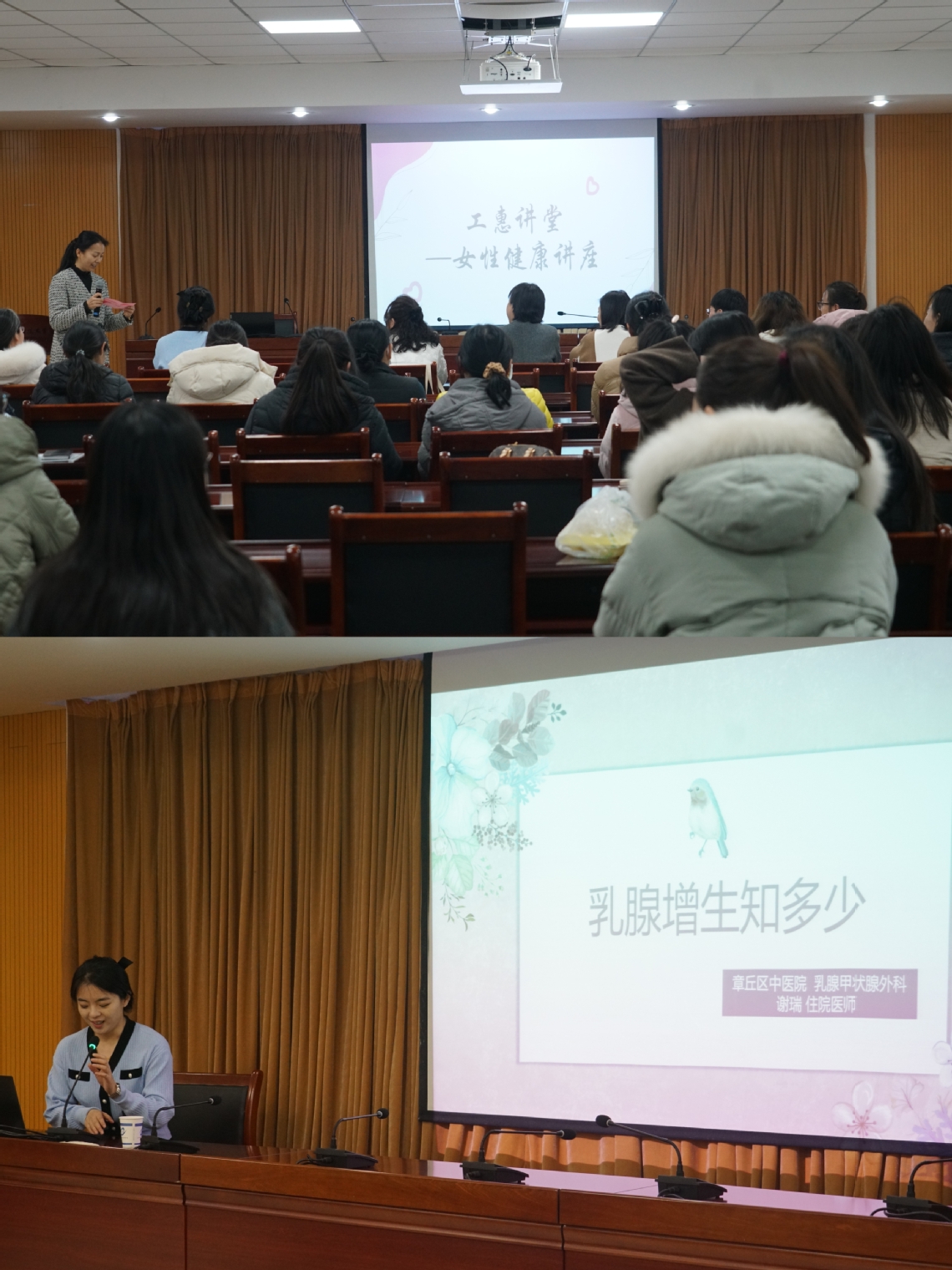 3月5日,值第114个“三八”国际妇女节来临之际,为增强女性保健意识,普及女性健康科学知识,章丘区中医医院妇委会与我校工会、妇委会联合举办了“关爱妇女发展 护佑女性健康”系列讲座,章丘区中医医院纪委书记王祥生、妇委会主任李莉、我校纪委书记柏一星出席了活动,女职工委员会、妇委会全体人员及女教职工代表80余人聆听了讲座。