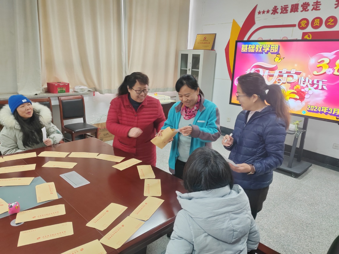 活动最后,部门为大家精心准备了节日蛋糕及贴心礼物,祝福大家生活如蛋糕一般甜甜蜜蜜,节日的仪式感令老师们露出喜悦的笑容,感受到来自基础教学部大家庭的融融暖意。大家纷纷表示,在最幸福的岗位,做最幸福的事情,在教书育人的征程中展现独立、阳光、自信的新时代女性形象,为学校发展贡献巾帼力量,勇毅奋发,绽放芳华!