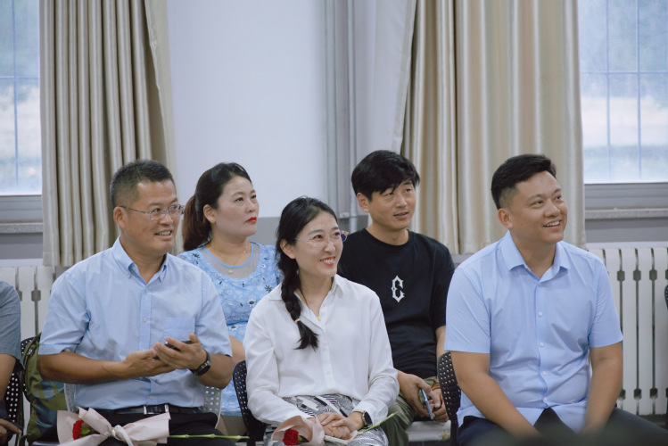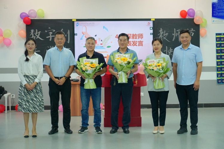本次庆祝活动还为即将退休的三位资深教师——李文杰、车学董、王文革——准备了惊喜,学院领导们亲自为他们送上了美丽的花束。李文杰老师回忆了自己四十余年的从教历程,感叹自己见证了学校的发展和进步,深感自豪。车学董老师则为年轻教师们送上了真诚的寄语,提醒大家要珍惜时间,多参加活动和比赛,提升自己的能力和价值,并始终保持对教师职业的热爱和敬畏之心。教龄满三十三年的王文革老师感慨时光飞逝,虽然年纪渐长,但仍希望为学校和系里贡献自己的力量,坚信年轻一代教师会更出色,创造出更加辉煌的明天。