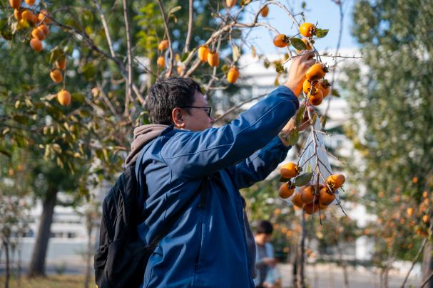 活动伊始,学校领导及行政二分工会成员齐聚柿子林藤廊处,在简短的采摘注意事项介绍后,大家纷纷拿起工具,踏入柿子林中,开始了亲手采摘的乐趣。金黄的柿子挂满枝头,在阳光下闪耀着诱人的光泽,参与者们在欢声笑语中体验着大自然的馈赠,并通过互助加深了友谊。