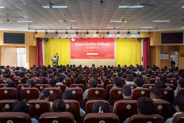 为大力弘扬教育家精神,贯彻落实立德树人根本任务,全面营造“立师德、正师风、强师能”的良好校园氛围,激励广大教职工坚守教育初心、以德立身育人,10月14日,我校在学术报告厅举行师德师风教育暨优秀教师事迹宣讲报告会。学校党委书记毕丛福,党委委员、宣传统战部部长聂莺出席活动,学生工作处、团委、各系党团总支负责人和350余名师生代表参加活动,报告会由工会主席齐学民主持。