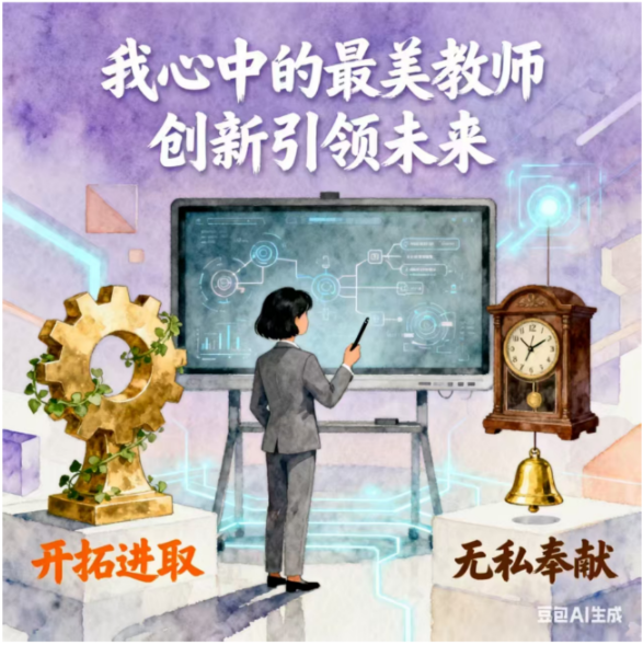 为弘扬尊师重教的良好风尚,展现教师队伍的崇高形象与精神风貌,积极响应国家推动人工智能技术应用的号召,丰富教职工精神文化生活,山东电子职业技术学院工会主办、数字创意学院分工会承办的“我心中的最美教师”AI创作大赛近日圆满落幕。活动自启动以来,得到全校在职教职工的热烈响应和踊跃参与,共收到参赛作品270余件,以科技与艺术融合的创新形式,为辛勤耕耘的师者们献上了一曲动人赞歌。