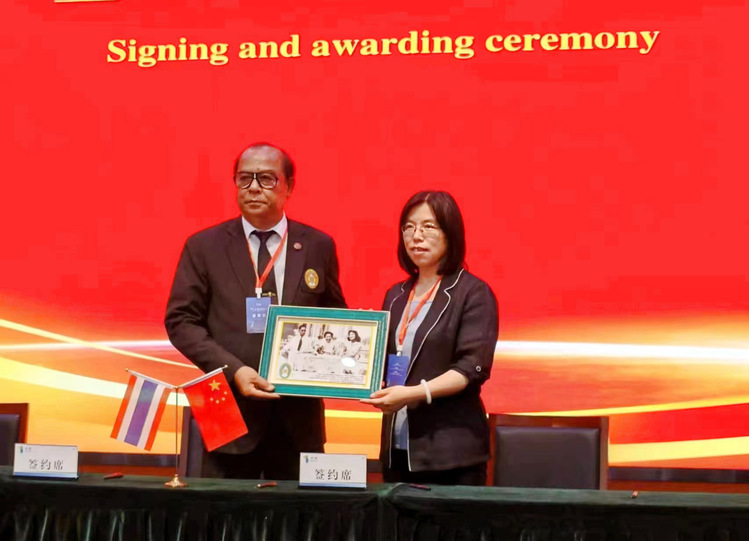 水发集团有限公司为我校及其他6所高校授予“校企合作单位”牌匾。随后,我校与泰国兰帕潘尼皇家大学、圣泉新材料(泰国)有限公司就“班·墨学院”建设达成合作共识,并现场签署三方合作备忘录。