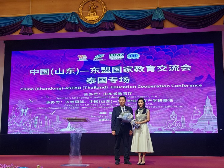 当日下午,中国(山东)—东盟国家教育交流会在泰国博仁大学举办,博仁大学校长 Darika Lathapipat博士、中国驻泰国大使馆文化参赞许兰、山东省教育厅副厅长仲红波致辞。仲红波介绍了山东高等教育发展现状及教育国际化的发展趋势,他指出,“中泰一家亲”的传统友谊为两国在教育领域的深度合作奠定了坚实的基础,欢迎泰国学生赴中国深造。