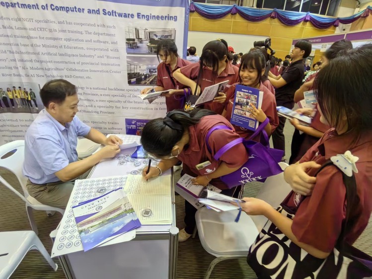 近三十所山东高校参展山东高等教育展暨HSK留学中国(山东专场)。此次活动吸引了泰国近千名学生前来观展,现场气氛热烈而活跃。