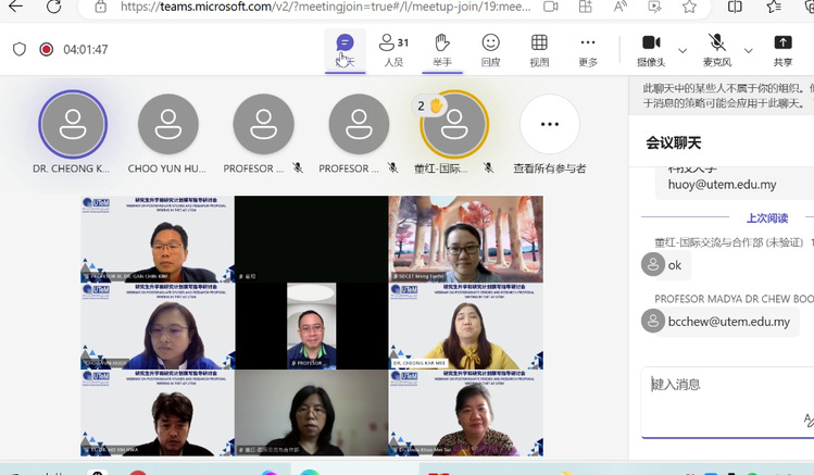 8月29日上午,我校国际交流与合作部携手马来西亚知名学府——马六甲技术大学(UTeM),举办了以“研究生升学与研究计划撰写指导”为主题的线上研讨会。此次研讨会吸引了来自校内各系部的四十余名教师积极参与,共同探索研究生教育的国际视野与科研创新的新路径。