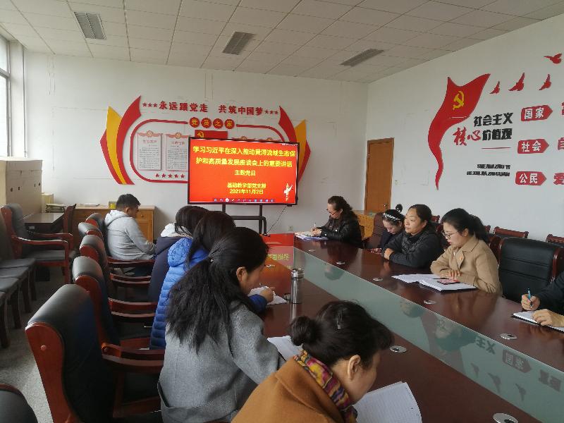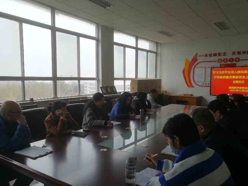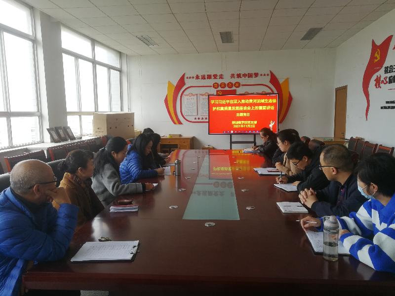 11月2日,基础教学部党支部召开会议,传达学习习近平总书记在深入推动黄河流域生态保护和高质量发展座谈会上的重要讲话精神,党支部书记张欣主持会议。