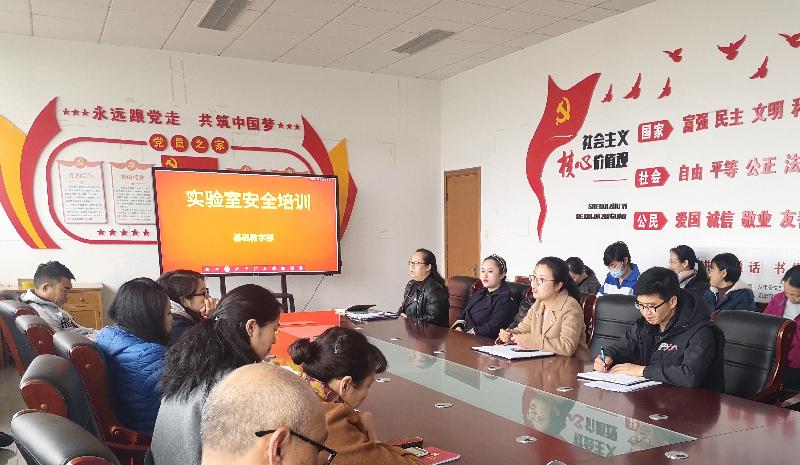 为进一步提高教职工安全意识和疫情防护认识,确保实验室安全,维护疫情常态化安全运行,保障教职工人身安全和校园和谐,11月2日,基础教学部在综合楼414举办实验室安全学习和疫情防控演练培训。