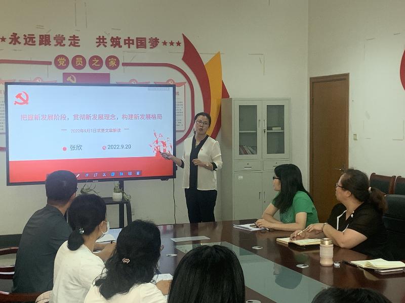 课上,张欣为全体党员解读了题为《把握新发展阶段,贯彻新发展理念,构建新发展格局》的求是文章。张欣讲到进入新发展阶段、贯彻新发展理念、构建新发展格局,是由我国经济社会发展的理论逻辑、历史逻辑、现实逻辑决定的。要准确把握新发展阶段,深入贯彻新发展理念,加快构建新发展格局,推动“十四五”时期高质量发展,确保全面建设社会主义现代化国家开好局、起好步。