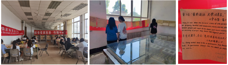 活动二:双语儒家文化节 基础教学部举办师生共同参与的“双语儒家文化节”。儒家经典《论语》具有永恒的思想价值,是全人类的文化遗产。文化节活动将古汉语与英文灵活融合,是对传统文化的创造性发展,是对外讲好中国故事的开端。 基础教学部崔红健老师挖掘《论语》里的哲学思想、人文精神、价值理念、道德规范,对其进行新时代的深刻解读和英文解释。同学们接受培训后,纷纷表示对人生价值、历史文化和语言文字的理解有了更深入的认识。并当场用优美书法展示了自己的思想收获。 教师是传承和发展优秀传统文化过程中的重要一环,教师们自觉提升传统文化素养,言传身教,知行合一,做学生的言行表率。基础教学部党员教师利用党课时间重温经典,和同学们一起参加“双语儒家文化节”活动,利用书法感悟圣人的精神力量。 传统文化进校园活动是一项系统工程,基础教学部开拓创新,古今融汇,从教师到课程,从课上到课下,从传统到新颖,形成全方位沉浸式教育新模式,为提高师生的传统文化素养,传承与发展优秀传统文化,丰富校园文化建设起到了重要作用。(基础教学部崔红健康燕)