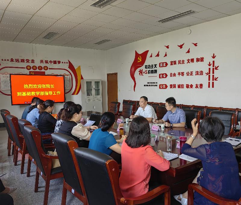 8月16日上午,院长张建臣莅临基础教学部调研指导工作。基础教学部主任张欣汇报了基础教学部主题教育调研成果及部门工作,基础教学部行政干部、党员及骨干教师参加,办公室主任王毅东陪同调研。