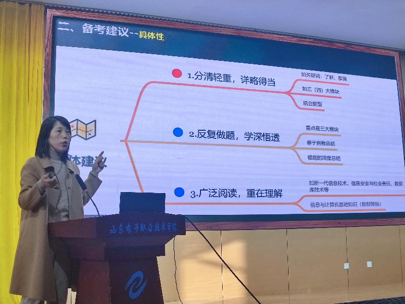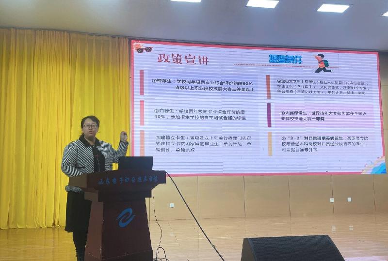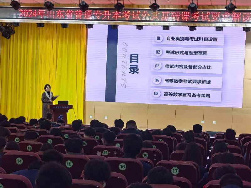 为更好地帮助山电学子提高升本认知、了解升本政策、明确复习规划。12月8日下午,“山东省2024年专升本考试要求”专题讲座在学术报告厅顺利开展,此次讲座由基础教学部康燕、张书玲、程爱朋和计算机与软件工程系陈双主讲,为同学们详细解读了各科目的考试要求及备考策略、答题技巧,2022、2023级有300余名学生积极参与。会议由基础教学部教学科长孙艳婷主持。 孙艳婷首先对专升本政策进行了解读,她指出专升本考试是高职院校学生继续深造的重要途径,对于提高学生的综合素质和就业竞争力具有重要意义。她主要介绍了考试科目、报名条件、录取规则等方面的内容,特别是2024年专升本考试的政策变化,让学生对专升本考试有了更全面的了解。数学、英语、语文、计算机科目的主讲老师进行了相关科目的考试要求、备考策略、答题技巧的分享。老师们结合历年真题,详细讲解了各科目的考试重点和难点,强调在备考过程中要注重基础知识的学习,提高解题能力,同时要注重实践操作能力及思维能力的培养。 现场气氛热烈融洽,学生们积极提问、认真记录。在答疑环节,老师们对学生的问题进行了一一解答,并给予了针对性的备考建议。同学们表示,此次讲座帮助自己明晰了专升本考试要求和政策,收获了实用的备考策略和答题技巧,更加坚定学习目标和方向,将做好详细规划,把握机遇,争取在专升本考试中实现自我突破。(基础教学部 康燕)