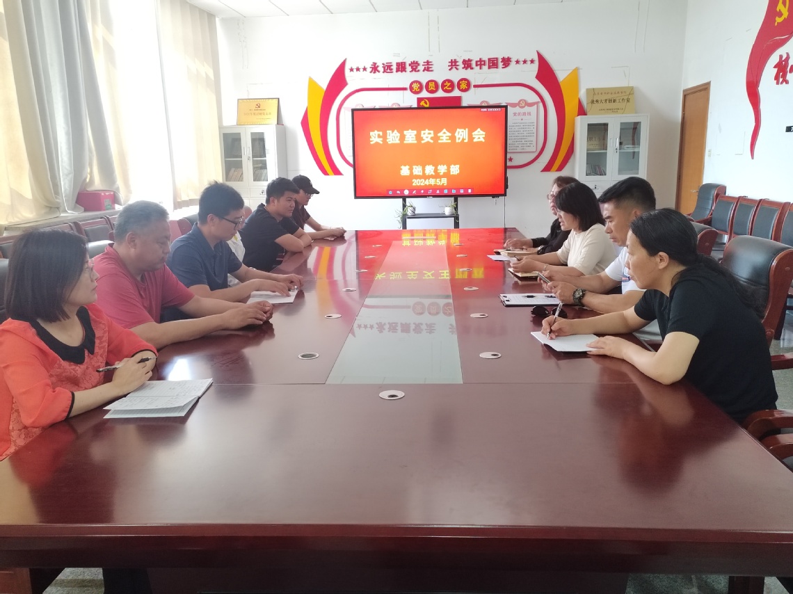 为深入贯彻落实党中央、国务院关于安全生产工作的决策部署,确保教学活动有序开展和实验室有序运行,进一步提升实验室安全管理水平,保障广大师生人身安全和校园稳定,基础教学部组织召开实验室安全例会,体育教研室全体老师、语音室和数学建模实训室负责人参会。