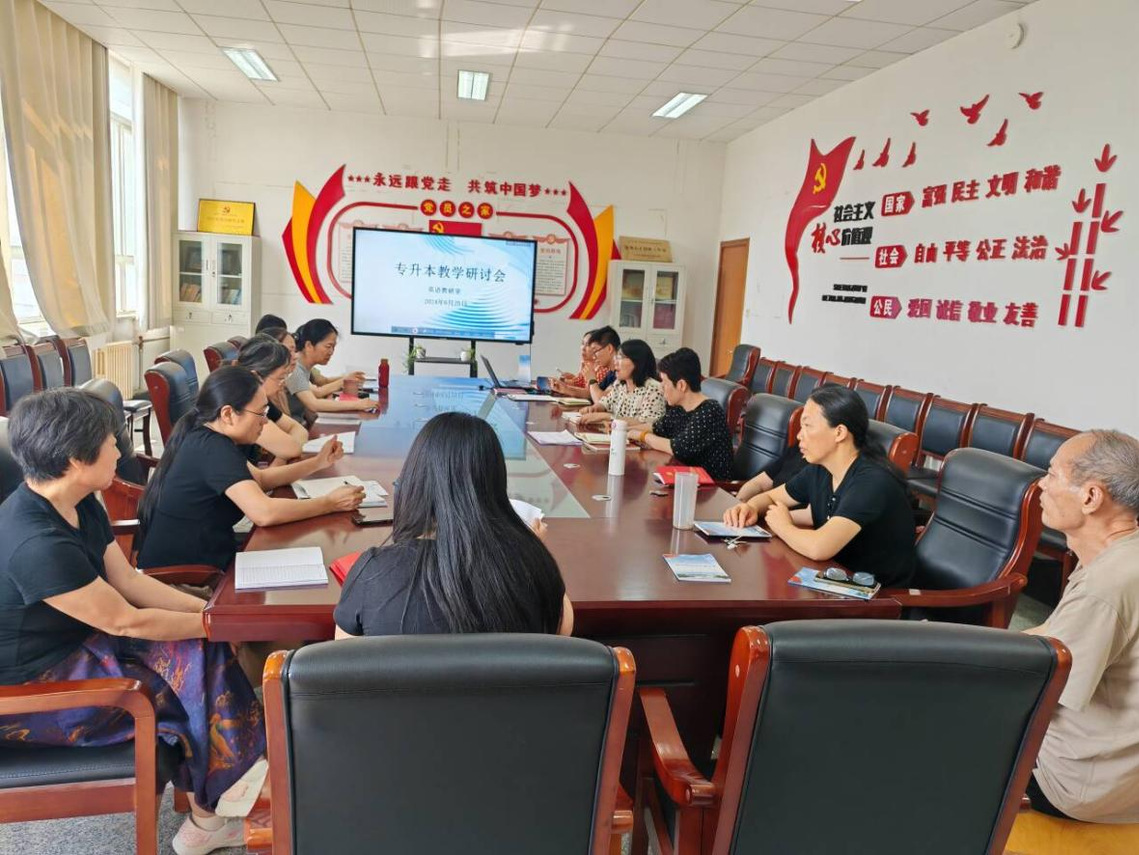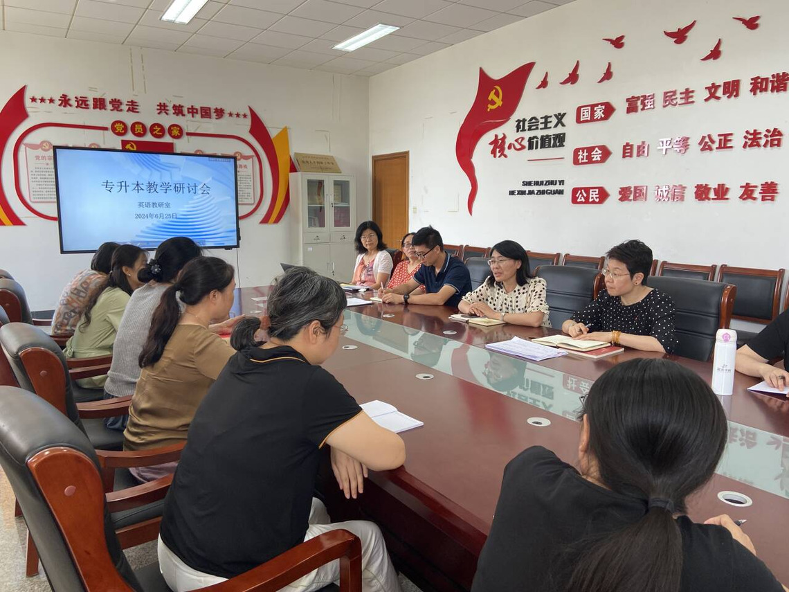 为科学安排新学期专本贯通班英语教学任务,进一步提升英语课教学质量,更好地满足同学们在专升本英语方面的学习需求,基础教学部于6月26日召开专题英语教学研讨会,探讨和规划新学期英语专升本教学组织开展工作,本次会议由基础教学部主任任文娟主持。