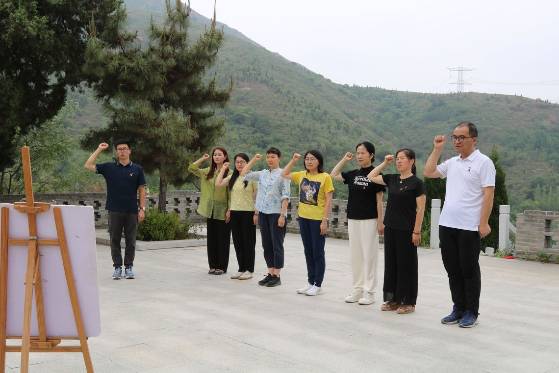 在纪念馆英雄广场,支部党员庄严宣誓,重温入党誓词,领悟建党初心,坚定理想信念,赓续红色基因,践行时代使命。