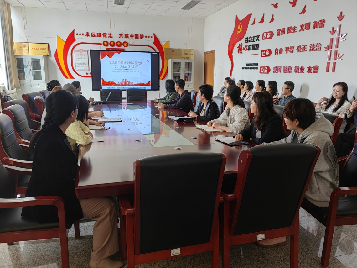 为深入学习贯彻党的二十届三中全会精神,深刻把握进一步全面深化改革的主题,10月15日,基础教学部党支部组织全体党员教师开展以“紧紧围绕推进中国式现代化进一步全面深化改革”为主题的集体学习活动。本次活动由支部组织委员李霞主持,支部全体党员教师参加。