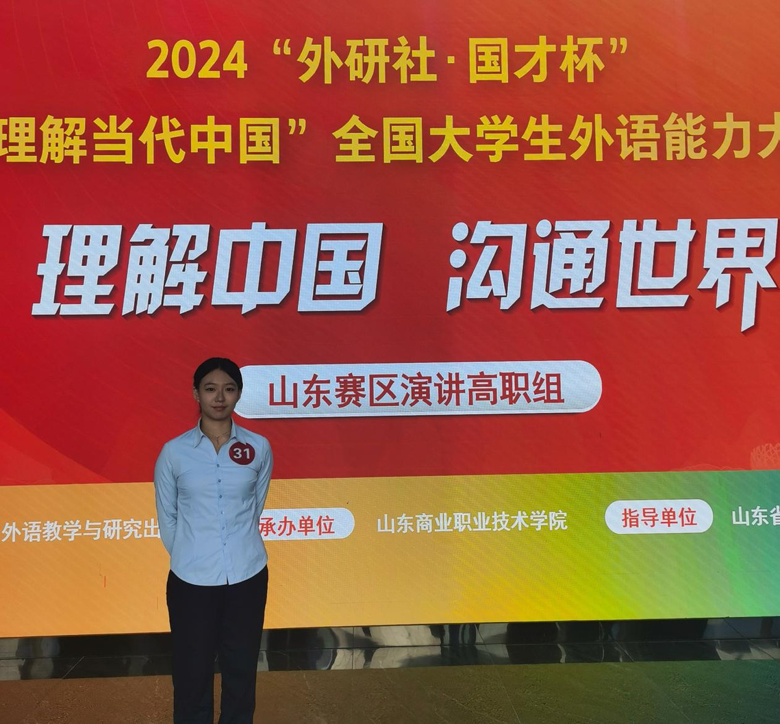 11月2日,2024“外研社·国才杯”“理解当代中国”全国大学生外语能力演讲大赛山东赛区复赛在山东商业职业技术学院举行,我校王嘉馨同学喜获银奖。这是我校学生在“外研社·国才杯”“理解当代中国”全国大学生外语能力大赛系列比赛中取得的又一佳绩。
