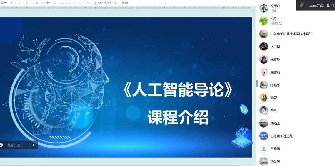 为了适应新时代教育发展的需求,提升教育教学质量,2月20日,人工智能课程开发团队组织开展线上集体备课研讨会。此次研讨旨在深入探讨人工智能通识课程的教学策略、课程设计、考核方案以及线上教学平台的优化使用,进一步推动我校人工智能教育普及与发展。