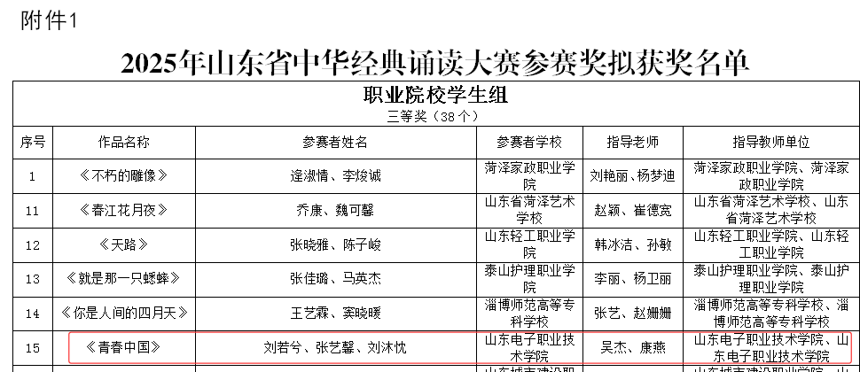 诵典传薪火,写经耀古风。近日,山东省教育厅对第七届中华经典诵写讲大赛山东相关赛项获奖名单进行了公示。我校荣获诵读大赛三等奖一项,书写大赛三等奖两项及优秀奖两项,为学文化育人工作再添华章。
