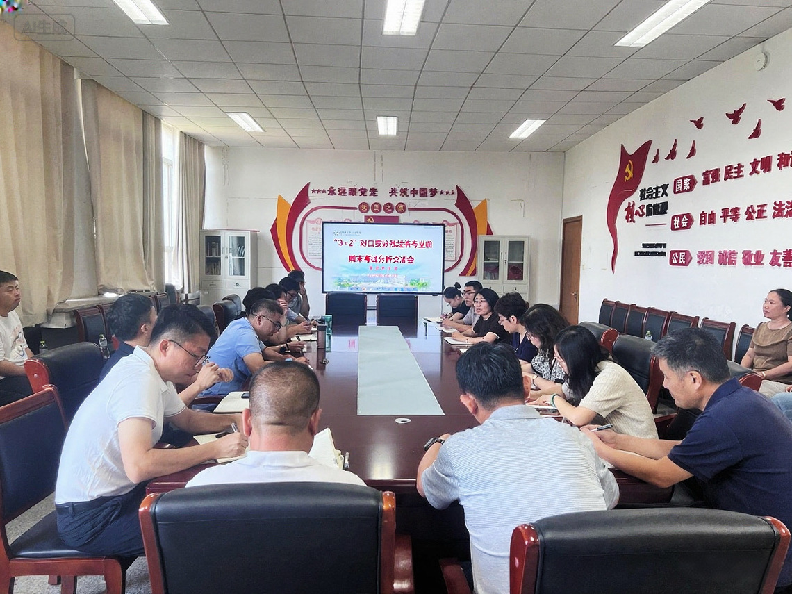 为更好的服务学生发展,与各学院形成合力做好“3+2”专本贯通学生转段考试科目的教学工作,9月3日上午,基础教学部在诚意楼414会议室组织召开“3+2” 对口贯通分段培养专业2024-2025(2)学期期末考试成绩分析交流会。教务处、各二级学院教学副院长、基础教学部教学干部等相关人员参加本次成绩分析交流会议。