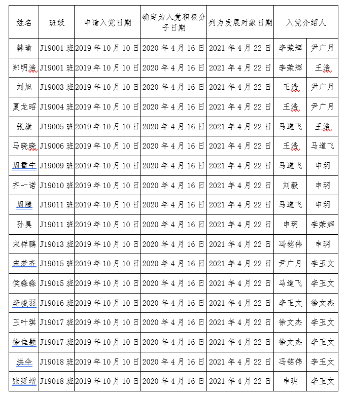 我支部于2021年5月27日召开支部大会,通过决议接收韩瑜等18名同志为中共预备党员,详细信息见附页。