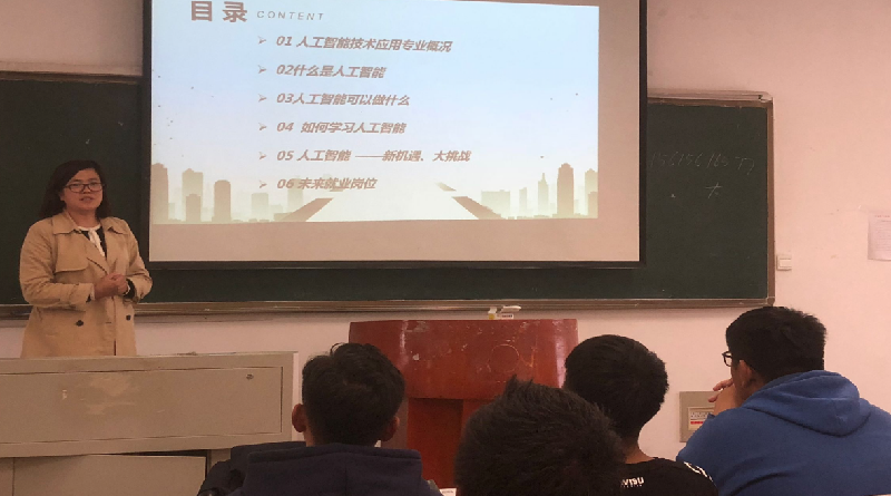 欢聚金秋迎新生,激扬青春展翅翔。新生入学专业教育是引导新生正确规划学习生涯的第一课,也是为了帮助新生掀开生活新篇章,开启人生新征途的重要一环。10月28日,特邀浪潮集团浪潮优派企业工程师到我校参加我系人工智能技术应用专业2021级新生专业教育。人工智能技术应用专业负责人张雪华、专业教师谭丽娜、浪潮优派经理左金明、工程师郭倩荣参加了本次活动。