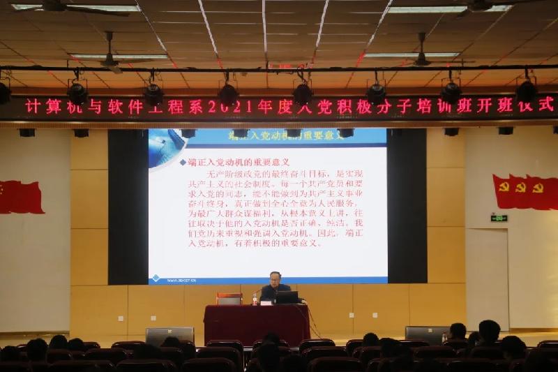 为加强对入党积极分子的培训工作,进一步提高入党积极分子的理论素养,我系于11月1日下午,在学术报告厅开展入党积极分子培训班开班仪式。我系党总支书记邢卫兵,学生党支部书记王文静出席开班仪式,学生党支部组织委员李荣辉主持会议。