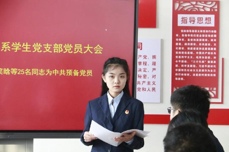 会议伊始,李荣辉同志介绍了王笑晗等25名发展对象的基本情况。随后,25名发展对象宣读了入党志愿书,向组织汇报对党的认识、入党动机、本人履历、现实表现以及应向党组织说明的问题,入党介绍人分别介绍了发展对象的现实表现和培养考察情况,并对能否入党表明了意见。