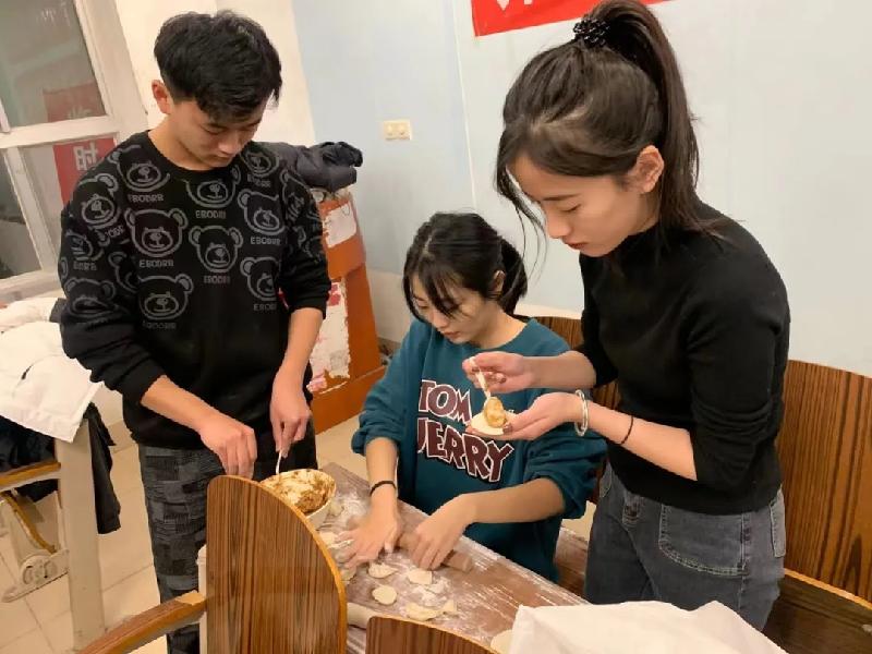 长夜相思日,岁月正醇时,愿所有的美好和幸福都如约而至。这一天,随着太阳的位置最靠南边,白昼变得最短,夜晚变得最长。为让同学们感觉到节日的温暖,缓解思乡之情,12月20日晚,我系组织21级学生在教室举办冬至包饺子活动。