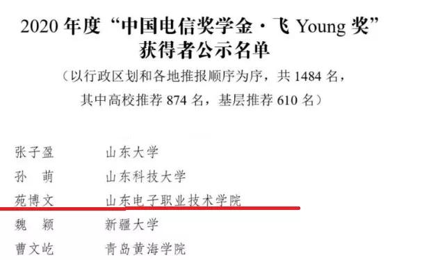 近日,2020年度“中国电信奖学金”评选结果公布,经校级推荐、材料审核、专家评审等环节,我系J20011班苑博文同学荣获“中国电信奖学金·飞Young 奖”。