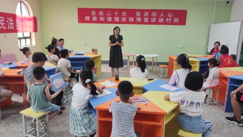 赤日当空,绿荫合地,满耳蝉鸣,欢声笑语。志愿者们怀着热情和奉献之心,在少年宫组织“先锋学堂”,以讲授计算机专业知识、宣讲红色故事、开展防溺水讲座、普及普通话等活动,与小朋友们一起学习、一起开心、一起成长,带给小朋友们欢乐。实践团与绣惠街道联合,为小朋友们讲解普法内容,形象直观的宣传法律知识。