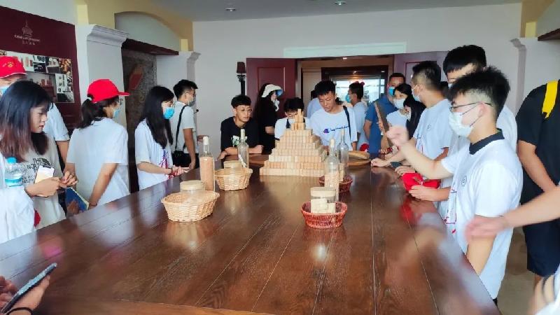 随着研学计划的推进,同学们来到了亚洲最大的单体酒庄:君顶酒庄位于世界七大葡萄海岸的山东蓬莱南山王谷。进入酒庄一股古老庄园的气息扑面而来。本着“七分原料,三分酿造”的态度从源头抓起,也就是“君顶”名字的由来。酒庄融合了金融、美术、音乐、体育与葡萄酒相关旅游相结合。同学们在专业人士的陪同下参观了葡萄酒的发酵、沉淀、保存等一系列步骤,才真正的了解了从葡萄一步一步到酒桌上,象征身份的葡萄酒的制作过程,而后研学团队一同品鉴了醇香的葡萄酒,配上美丽的风景,酒的风味有了最好的体现,酒不醉人人自醉,在一片欢声笑语中酒庄的学习告一段落。