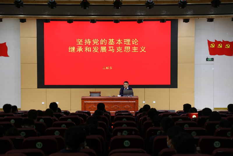 王毅东以“坚持党的基本理论、继承和发展马克思主义”为核心内容展开讲解,详细阐述了“中国共产党的指导思想确立和发展的历史坐标”,解释了中国共产党把马列主义确立为指导思想的原因,并着重强调了科学发展观和习近平新时代中国特色社会主义思想。