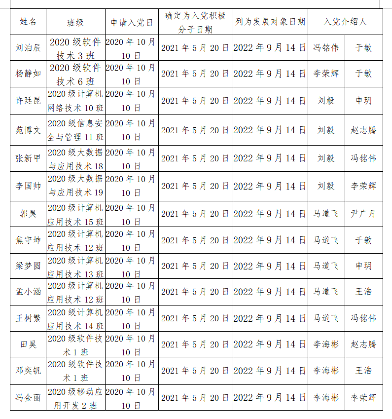 我支部于2022年11月4日召开支部大会,通过决议接收苑博文等14名同志为中共预备党员,详细信息见附件。