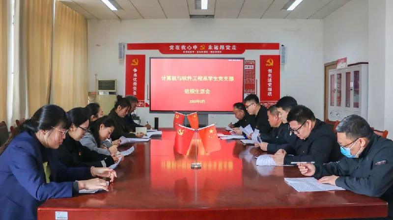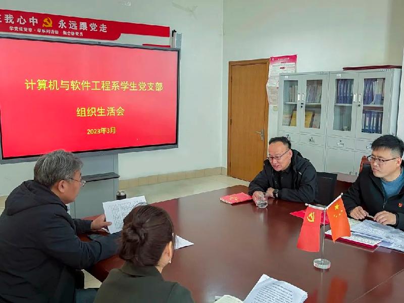 为进一步深入学习贯彻党的二十大精神,坚持不懈用习近平新时代中国特色社会主义思想凝心铸魂,3月24日,计算机与软件工程系学生党支部在综合楼504 ,按要求相继召开组织生活会并开展民主评议党员。会议由支部组织委员李荣辉主持,系党总支书记邢卫兵、副书记刘学莅临现场指导,学生党支部全体党员参加。