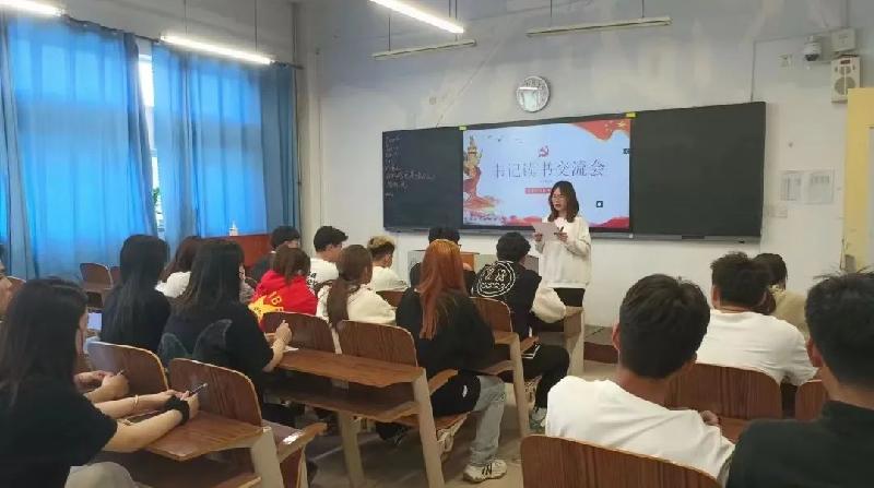 习近平总书记在党的二十大报告中明确指出:高质量发展是全面建设社会主义现代化国家的首要任务。为了让广大青年学习宣传贯彻习近平总书记重要讲话精神和全国两会精神情况,了解在全面建设社会主义现代化国家新征程上书写的发展新篇章。我系于4月17日在2103教室举行“书记读书会”。