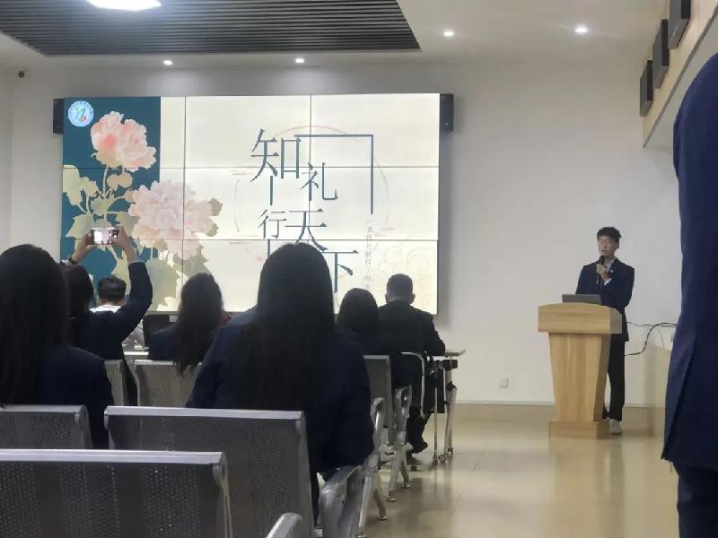 为了让同学们更好地了解到中国的传统礼仪以及现代的商务礼仪,学“规范”,用“规范”,做到“知”与“行”合一,笃行致远,更好地赓续和发扬中华优秀传统文化,我系易班学生工作站参加了由山东电子职业技术学院易班学生工作站总站在4月27日下午于一站式服务大厅开展文明礼仪宣讲活动。