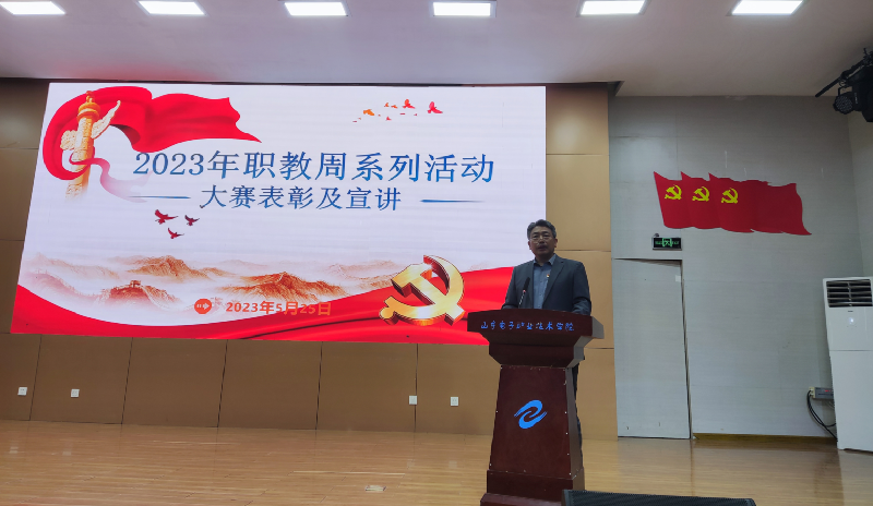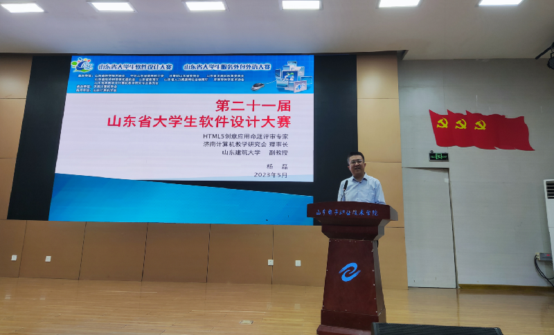 为更好地激发大学生参加技能大赛的热情,切实提高学生创新能力,5月25日下午,计算机与软件工程系在学术报告厅成功举办“2023年职教周--大赛表彰及宣讲”活动,系主任刘学、各赛项指导教师以及参赛团队代表等参加了本次活动,活动还特邀山东建筑大学杨磊教授为学生进行山东省软件设计大赛的赛项指导。