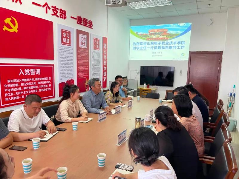 为深入推进学习贯彻习近平新时代中国特色社会主义思想主题教育,走深走实,拓展发展思路,借鉴兄弟院校经验,促进互动交流,6月8日,计算机与软件工程系主任刘学带队,一行7人赴山东传媒职业学院信息工程系走访调研,系主任董善志等同仁热情接待了调研小组。双方就专业建设、学风涵养及孔子学堂建设作了深度学习和交流,同时实地参观了信息工程系党建阵地、标准化教室、孔子学堂。