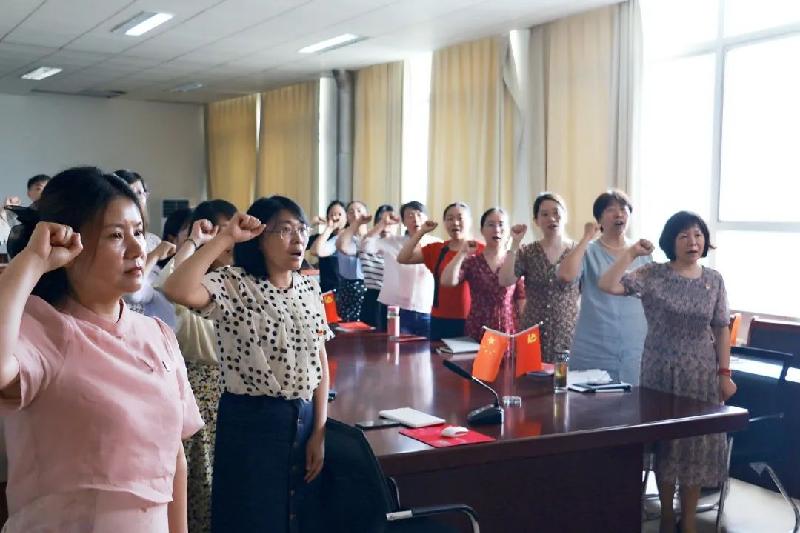 随后由王文静作为领誓人,带领全体党员重温入党誓词。使现场的每一位党员都再次接受了心灵的洗礼,产生了强烈的共鸣,激励着毕业生们坚定理想信念,保持奋斗精神,始终对党忠诚。