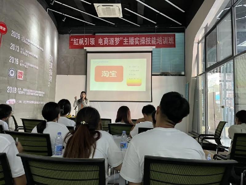 研学第一天,研学团成员走进济宁深科广场新媒体电商产业园,了解新媒体和电商产业的发展历程;深入多家电商企业,与企业工作人员沟通交流,倾听他们的创业经历、成功案例和面临的挑战,感悟创业之路的艰苦。随后,产业园工作人员为研学团开展“红帆引领 电商逐梦”主播实操技能培训课,针对现代直播电商的现状进行深入分析,将电商运营技巧和话术进行分享,让研学团深入了解企业的产品及现代电商的技术和运营模式。