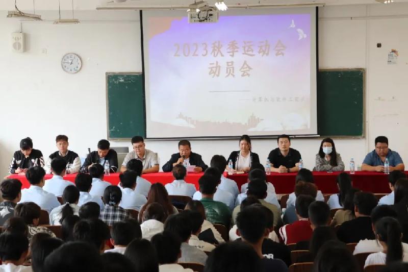 在运动会即将到来之际,为充分调动运动员的积极性,保障运动员训练期间各项服务工作有序进行,我系于9月26日举行运动会动员大会,计算机与软件工程系全体辅导员及2023级新生代表参加会议,会议由辅导员李海彬主持。