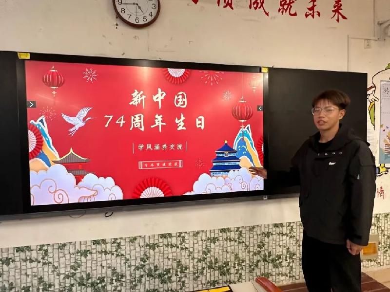 祖国的历史悠久绵长,回望历史长河,中华民族就像珠穆朗玛峰一样傲然挺立,在中华人民共和国成立74周年之际,辅导员李海彬老师带领J21001-J21002、J22001-J22002、J23001-J23002班召开“庆祝新中国成立74周年及学风涵养交流会”。