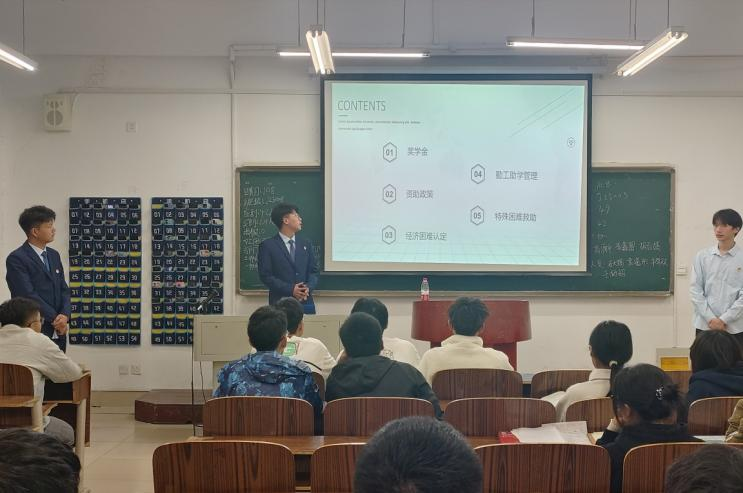 为了进一步加强学生资助政策的宣传力度,提升学生对国家资助政策的认识,全面推进精准资助和资助育人。10月8日晚自习,勤工助学部在自习室为23级同学进行了学生资助政策解读。本次会议由李荣辉老师担任主讲,23级同学积极参与。