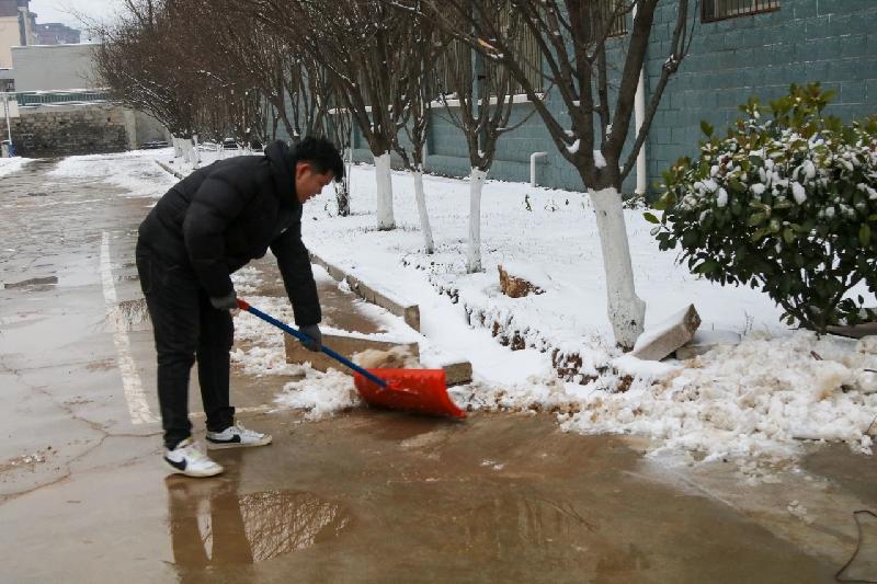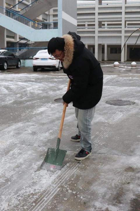在活动现场,学生干部们充分发挥了先锋模范作用,他们手持铁锹、扫帚等工具,热情高涨地投入到学校扫雪工作中。他们分工明确,团结协作,将校园内的积雪清理得干干净净,为同学们营造了一个干净的校园环境。